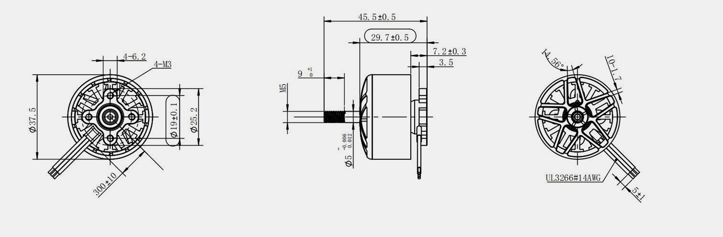 | Max. P (W) | Napětí (V) | Max. já A) | KV | Proud naprázdno (A) | Odpor (mΩ) | Poláci | Rozměr motoru (mm) | Stator Dim. (mm) | Montáž (mm) | N.W. (g) | Prop. (palec) | ||||||||||||||||